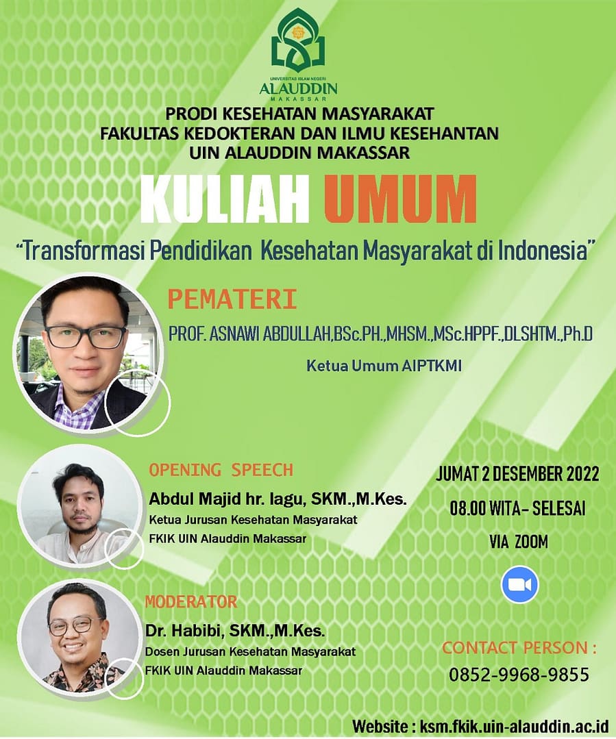 Mahasiswa Baru (Maba) Fakultas Kesehatan Masyarakat (FKM) Universitas Tadulako (Untad) angkatan 2022 menggelar inaugurasi, Acara berlangsung pada tanggal 19 November 2022 di Sriti Convention Center. Dekan FKM Untad Prof. Dr. Nurdin Rahman, M.Si., M.Kes. diwakili Wakil Dekan Bidang Akademik. Sejumlah Dosen, Tenaga Kependidikan, Ketua BEM FKM, seluruh jajaran pengurus lembaga, panitia, perwakilan mahasiswa tiap angkatan, serta para alumni juga turut hadir.…