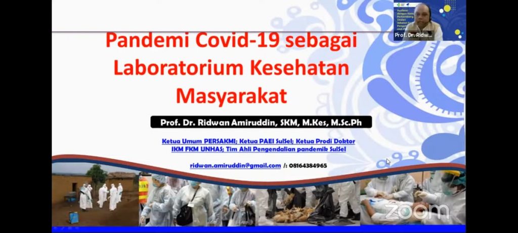 Pemaparan Materi Oleh Prof. Dr. Ridwan Amiruddin,SKM., M.Kes Selaku Ketua Umum PERSAKMI ; Ketua PAEI SulSel ; Ketua Prodi Doktor IKM FKM UNHAS ; Tim Ahli Pengendalian Pandemik SulSel