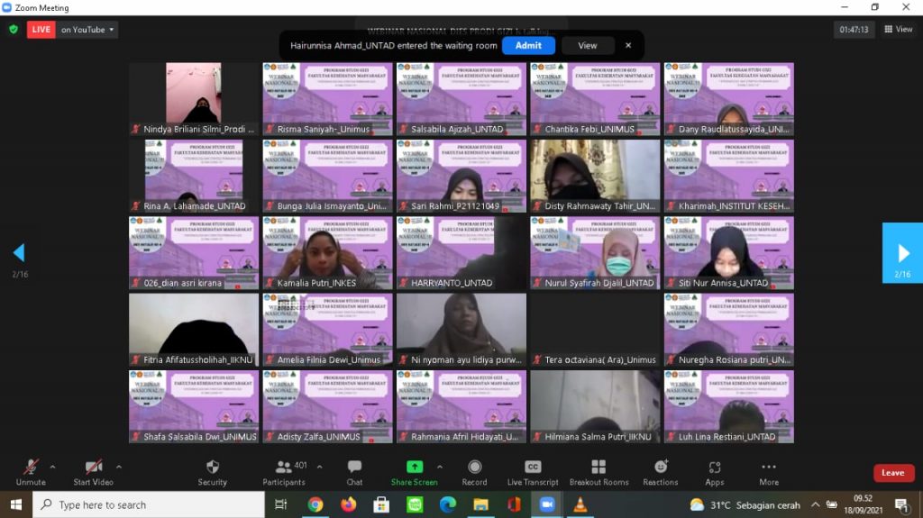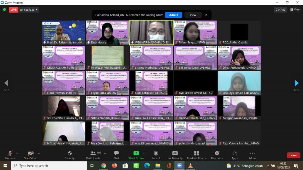 Dies Natalis Prodi Gizi FKM Untad ke 4 Tahun 2021 & Webinar Nasional