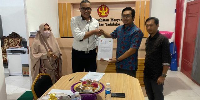 Fakultas Kesehatan Masyarakat (FKM) Universitas Tadulako (Untad) menjalin kerja sama dengan Fakultas Ilmu-Ilmu Kesehatan (FIIK) Universitas Mandala Waluya (UMW) Kendari, belum lama ini. Acara berlangsung pada Senin (1/11/2022) lalu, dilangsungkan di Ruang Dekanat FKM Untad dan dihadiri oleh Dekan FIIK UMW Kendari, yang diwakili Ketua Program Studi S2 Kesmas, Dekan FKM Untad yang diwakili Wakil Dekan Bidang Akademik, Wakil Dekan Bidang Umum dan Keuangan, serta dosen FKM Untad.