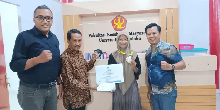 Fakultas Kesehatan Masyarakat (FKM) Universitas Tadulako (Untad) memberikan reward kepada mahasiswa FKM Untad yang meraih juara 2 cabang olahraga karate kumite 50 kg putri pada Pekan Olahraga Mahasiswa Nasional (POMNAS) XVIII tahun 2023 di Universitas Lambung Mangkurat, Banjarmasin, Kalimantan Selatan.
