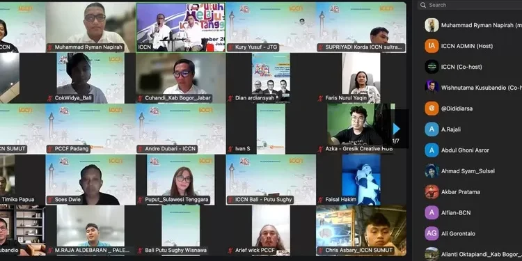 Akademisi Fakultas Kesehatan Masyarakat (FKM) Universitas Tadulako (Untad) Dr. Muh. Ryman Napirah, S.KM., M.Kes., M.AP., QRMA. turut berpartisipasi dalam zoom meeting Creative Talk sebagai rangkaian Rakornas Indonesia Creative Cities Network (ICCN) 2024. Acara berlangsung secara hybrid yang berpusat di SMESCO Labo Jakarta. Sebagai narasumber Wishnutama Kusubandio (Ketua Dewan Pengarah ICCN dan Komisaris Utama Telkomsel), Tb. Fiki C. Satari (Ketua Umum ICCN), dan Raffi Ahmad (Creative and Entertainment Entrepreneur).