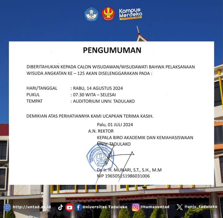Category: PengumumanBy Ardi27/07/2024Leave a comment Author: Ardi https://fkm.untad.ac.id/ Post navigationPreviousPrevious post:FKM Untad Gelar Meeting Bersama Mahasiswa untuk Persiapan Magang ke JepangNextNext post:PENGUMUMAN PERPANJANGAN PEMBAYARAN UKT SEMESTER GANJIL TAHUN 2024/2025 UNTUK MAHASISWA LAMARelated postsPengumuman Perpanjangan Batas Waktu KRS Siga-8 Semester Genap TA 2025/202614/02/2026Pengumuman Perpanjangan Pembayaran UKT Semester Ganjil TA 2025/202630/08/2025Pengumuman Pengisian KRS Semester Genap Tahun 2024/202526/01/2025Pengumuman Pembebasan UKT Mahasiswa Akhir Semester 2023 Genap23/01/2025Pengumuman Hari Libur dan Cuti Bersama Tahun 202523/01/2025Pengumuman Penyampaian Perubahan Bank Pengelola Dana Pendapatan dan Operasional23/01/2025